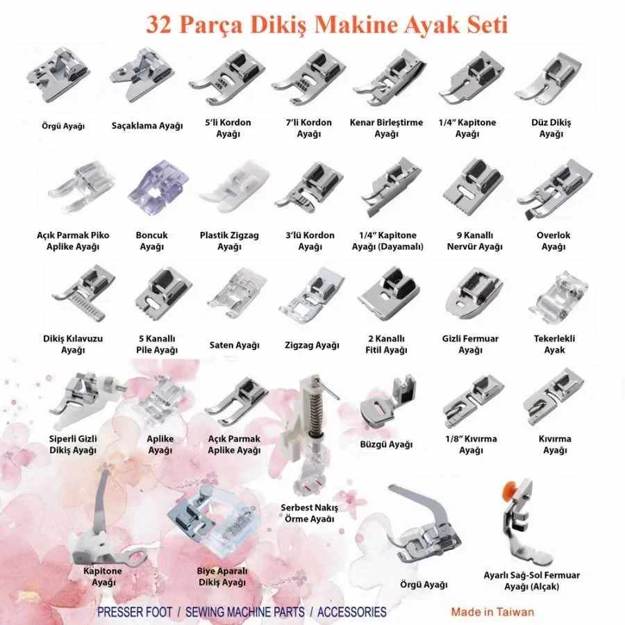 32 Parça Ev Tipi Dikiş Makinesi Ayak Seti