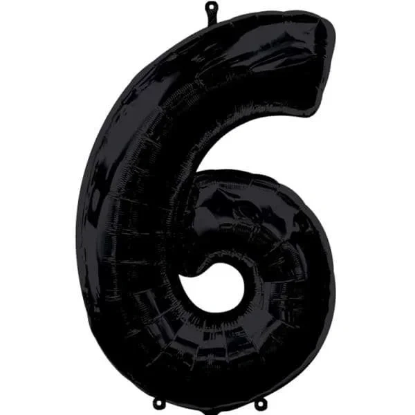 6 Rakamı Siyah Renk Folyo Balon 100 cm