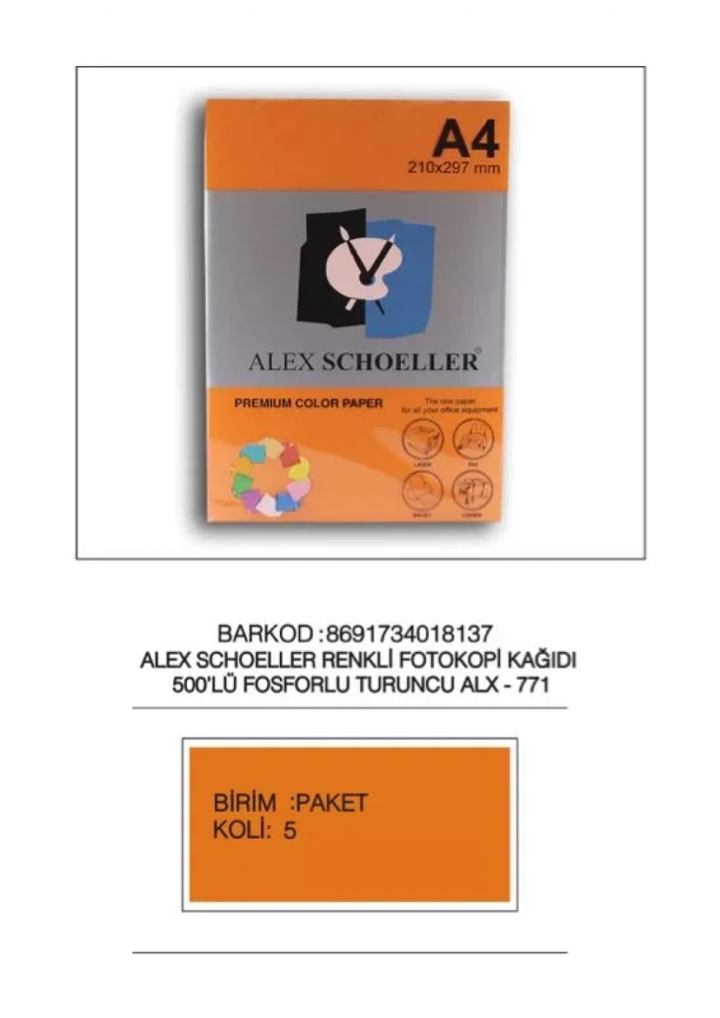 Alex A4 Fosforlu Turuncu Fotokopi Kağıdı 500 Lü Alx-771