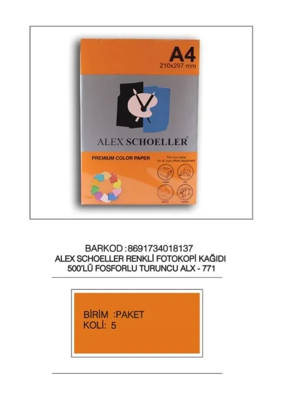 ALEX A4 FOSFORLU TURUNCU FOTOKOPİ KAĞIDI 500 LÜ ALX-771