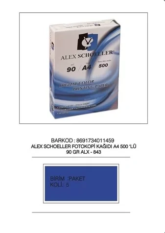 ALEX SCHOELLER A4 90 gr FOTOKOPİ KAĞIDI 500 LÜ (ÖZEL FİYAT)