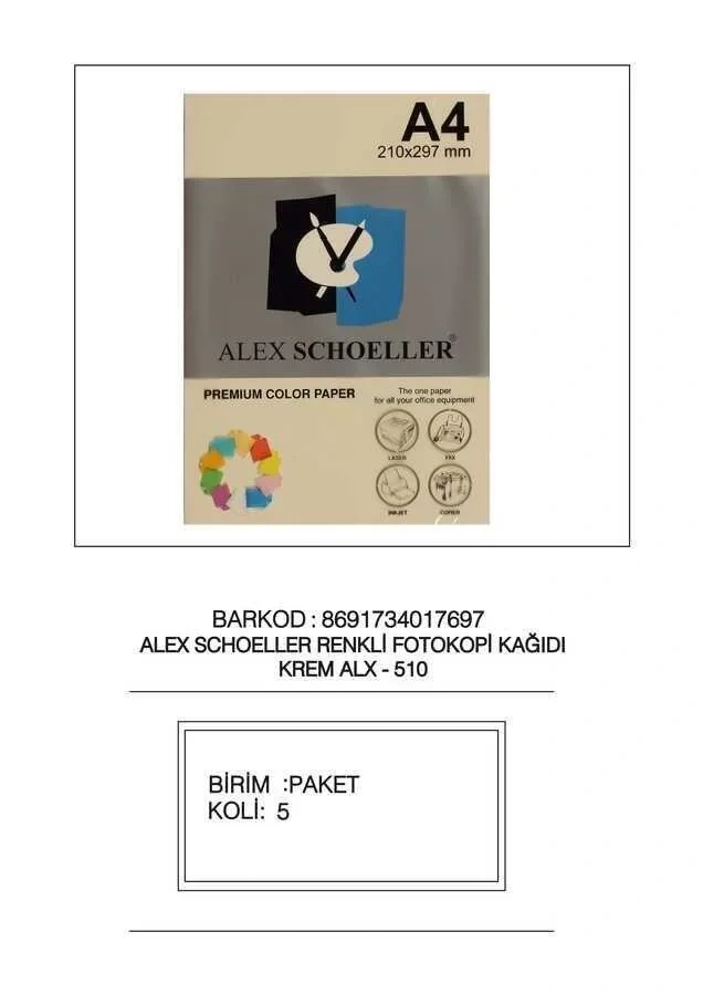 Alex Schoeller Fotokopi Kağıdı Renkli A4 500'lü 510 Krem