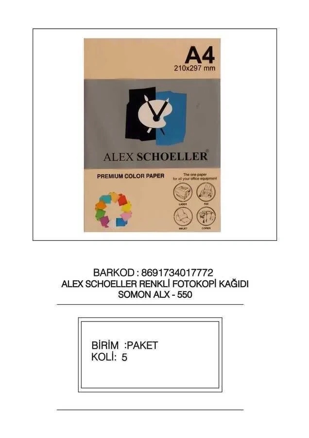 Alex Schoeller Fotokopi Kağıdı Renkli A4 500'lü 550 Somon