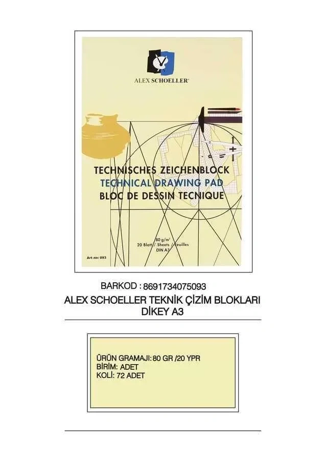 Alex Schoeller Teknik Dik Blok A3 20 Yaprak 80 gr