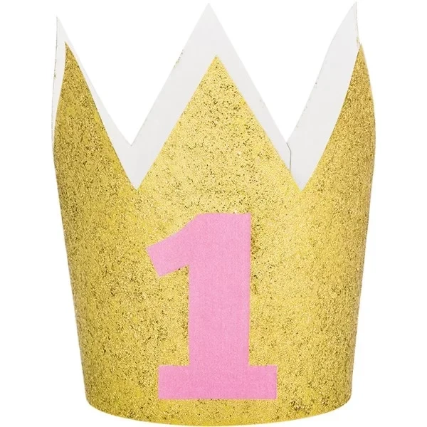 Altın Renk Simli/Pembe 1 Yaş Taç 1 Adet