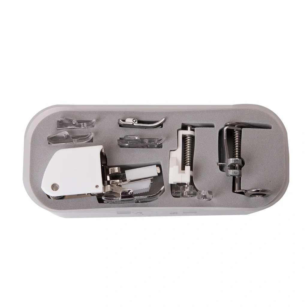 Aplike ayak tabanları ayak tabanı şeklindedir. Alçak tutucu bağlantılı tüm ev tipi dikiş makineleri için uyumludur.