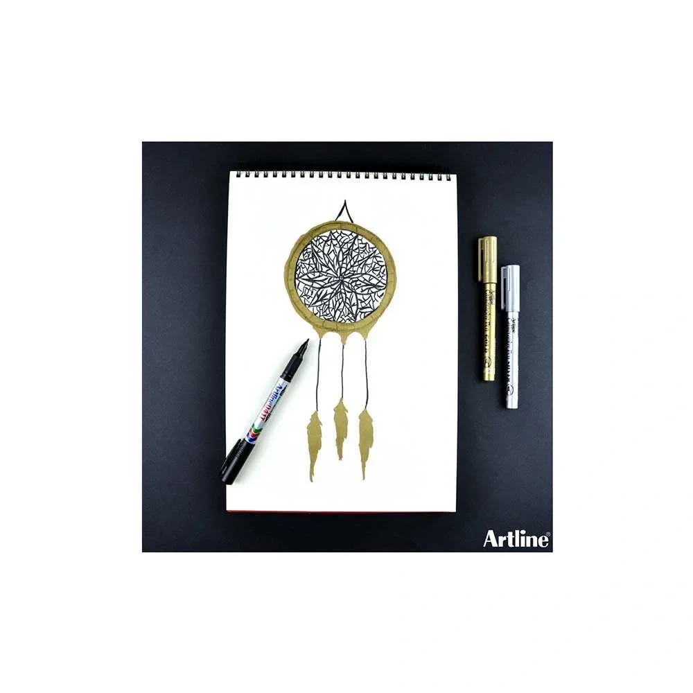 Cam, plastik, metal, kauçuk,kereste, lastik gibi her yüzeyde kullanılabilen metalik renk boya kalemi. Suya solmaya dayanıklı mürekkeplidir. Hızlı kurur. 2.5 mm Uç kalınlığı Kaligrafik Uç