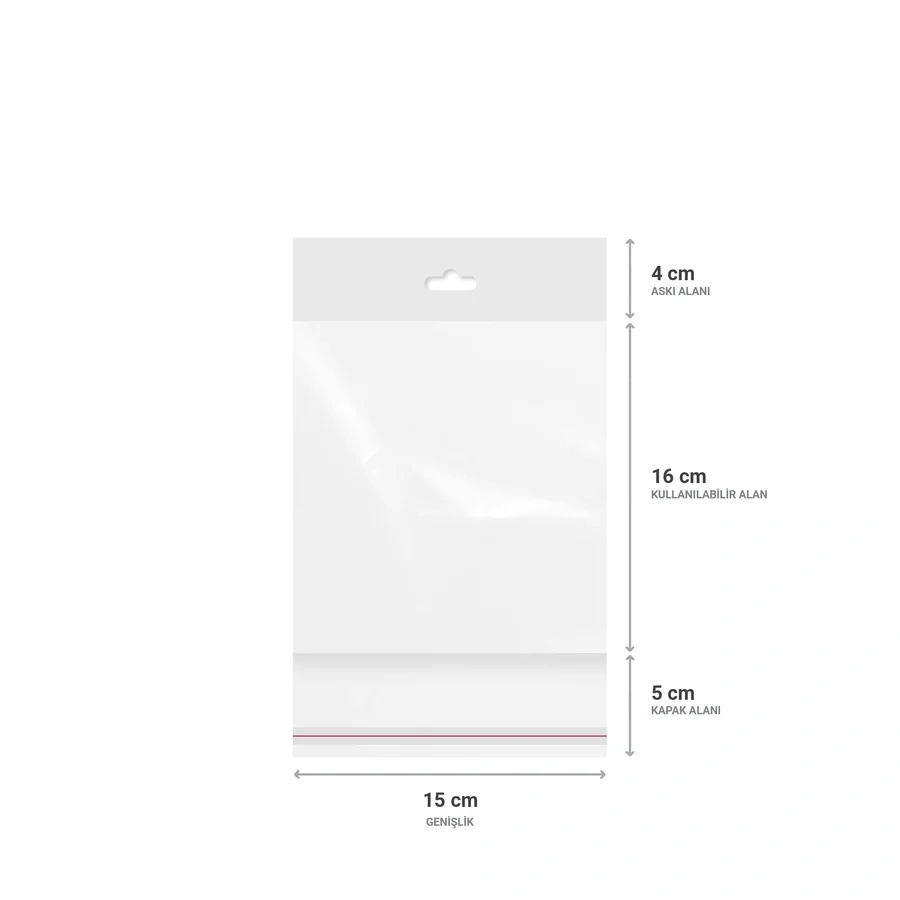 Askılı (Meksika Şapka) Bantlı Şeffaf Opp Torba 12x21+9 cm - 500 Adet