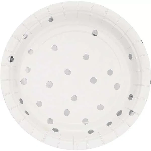 Beyaz Üzeri Gümüş Yaldız Puanlı Küçük Tabak 8 Adet