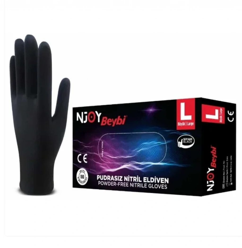 Beybi Njoy Siyah Nitril Medikal Muayene Eldiveni ( L ) 20 Paket
