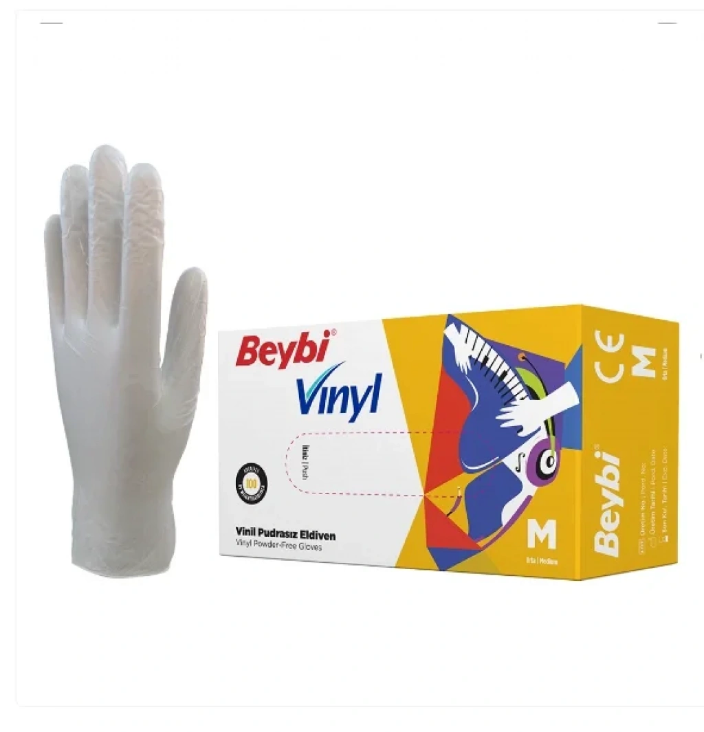 Beybi Vinil Şeffaf Muayene Eldiveni Pudrasız ( M ) 20 Kutu