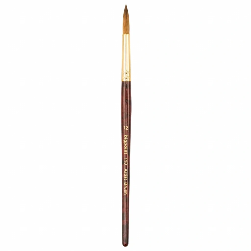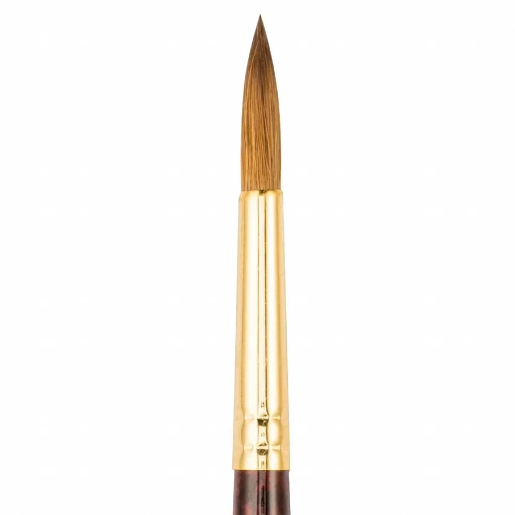 110 Serisi Samur Kolinsky Yuvarlak Fırça Numara: 12 Kaliteli %100 doğal kolinsky samur kılından üretilmiştir. Suluboya, kumaş boyası, ipek boyası için profesyönel fırçadır. Su tutma ve boya depolama kapasitesi yüksektir. Samur kılı ile özel ahşap sapı birleştiren kısım altın kaplamalı pirinçten yapılmıştır.