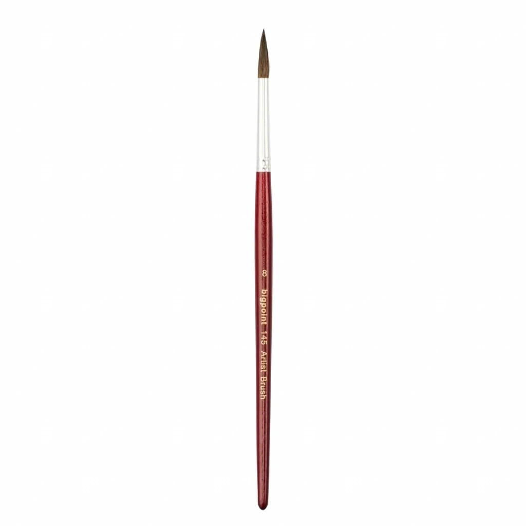 145 Serisi Midilli Kılı Yuvarlak Fırça Numara: 8 Kaliteli %100 doğal midilli(pony) kılından üretilmiştir. Suluboya, guaj boya, akrilik boya ve poster boyası için idealdir. Su tutma ve boya depolama kapasitesi yüksektir. Fırça kılı ile vernikli bordo ahşap sapı birleştiren kısım nikel kaplamalı pirinçten yapılmıştır.