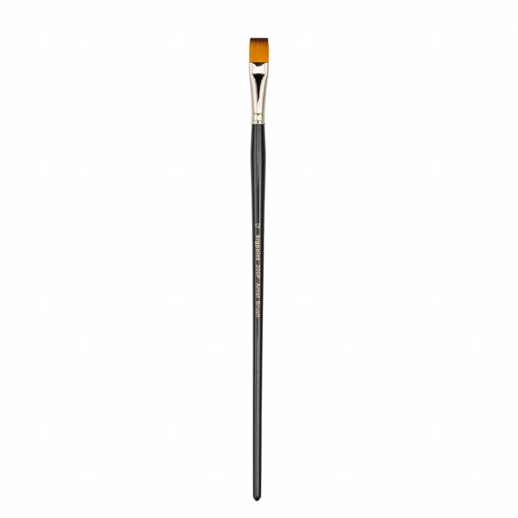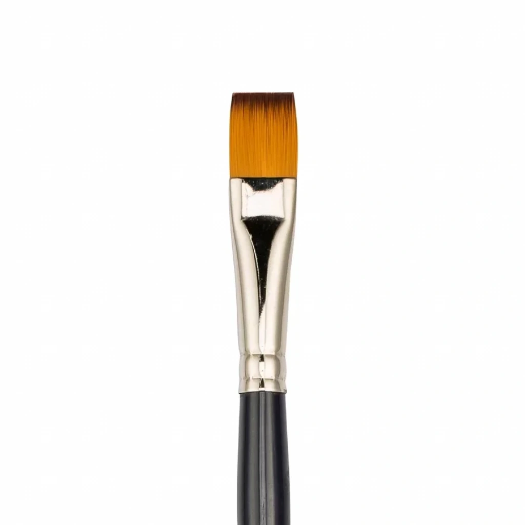 200F Serisi Sentetik Kıl Düz Kesik/Yassı Fırça Numara: 12 Kaliteli golden with brown tip(altın renkli, kahverenkli uçlu) sentetik kıldan üretilmiştir. Yağlı boya ve akrilik boya için idealdir. Fırça kılı ile vernikli uzun siyah ahşap sapı birleştiren kısım nikel kaplamalı pirinçten yapılmıştır.