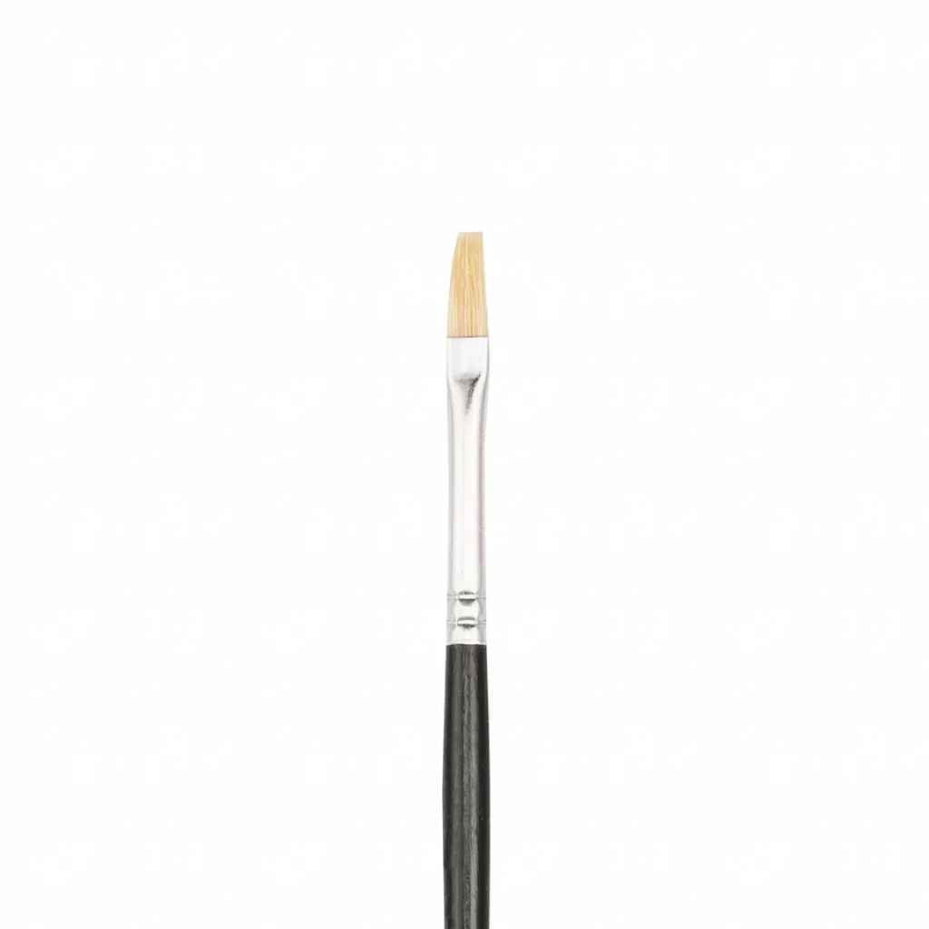 358F Serisi Beyaz Doğal Kıl Düz Kesik/Yassı Fırça Numara: 4 Kaliteli %100 doğal beyaz bristle kılından üretilmiştir. Yağlı boya, akrilik boya, suluboya, guaj boya, kumaş boyası, cam boyası ve porselen boyası için idealdir. Kısa saplı olması daha fazla kontrol olanağı sağlatır. Fırça kılı ile vernikli siyah ahşap sapı birleştiren kısım nikel kaplamalı pirinçten yapılmıştır.