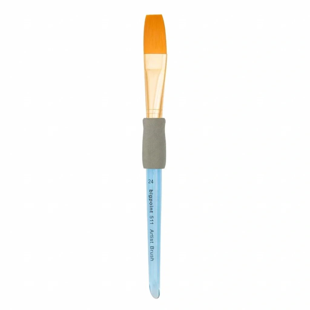 511 Serisi Sentetik Kıl Akrilik Sap Düz Kesik/Yassı Fırça Numara: 24 Kaliteli golden kıldan üretilmiştir. Suluboya, yağlı boya, kumaş boyası, ahşap boyası, cam boyası, seramik boyası, dekoratif, desen ve one stroke çalışmaları için idealdir. Gövdesindeki özel kauçuk tutma alanı sayesinde elinizden kaymadan hassas çalışma yapabilirsiniz. Kısa şeffaf akrilik saplı olması daha fazla kontrol olanağı sağlatır. Fırça kılı ile akrilik sapı birleştiren kısım nikel kaplamalı pirinçten yapılmıştır.
