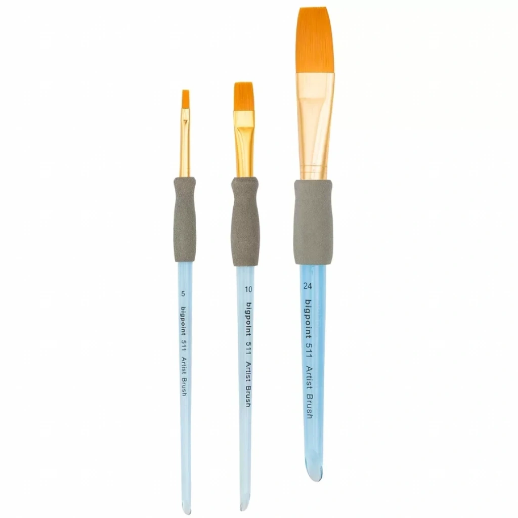 511 Serisi Sentetik Kıl Akrilik Sap Düz Kesik/Yassı Fırça Numara: 5 Kaliteli golden kıldan üretilmiştir. Suluboya, yağlı boya, kumaş boyası, ahşap boyası, cam boyası, seramik boyası, dekoratif, desen ve one stroke çalışmaları için idealdir. Gövdesindeki özel kauçuk tutma alanı sayesinde elinizden kaymadan hassas çalışma yapabilirsiniz. Kısa şeffaf akrilik saplı olması daha fazla kontrol olanağı sağlatır. Fırça kılı ile akrilik sapı birleştiren kısım nikel kaplamalı pirinçten yapılmıştır.