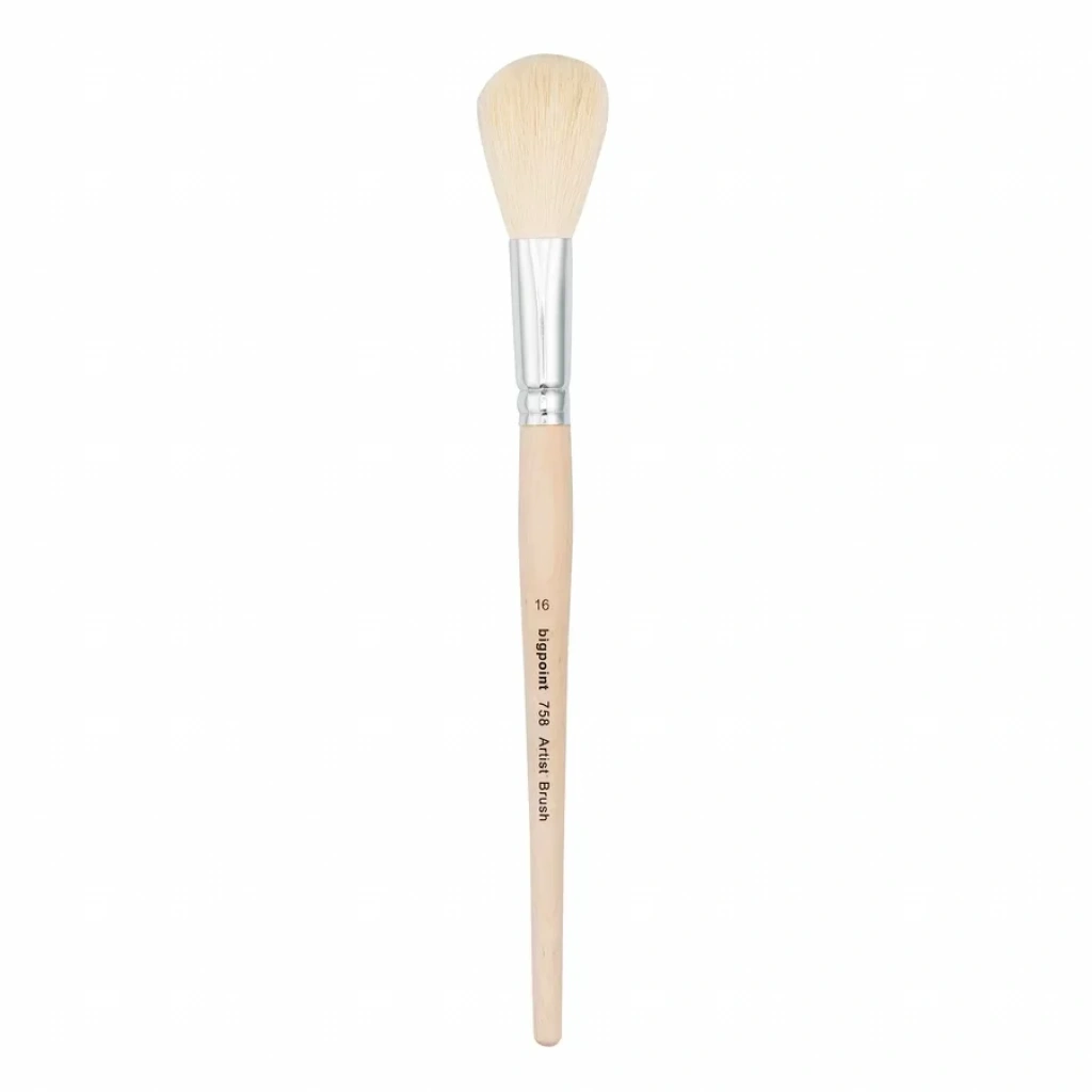 758 Serisi Mop Ponpon Fırça Numara: 16 Kaliteli %100 doğal yumuşak keçi kılından üretilmiştir. Özellikle yağlı boya, akrilik boya ve toz pastel çalışmaları için idealdir. Gölgelendirme, ışık kontrastı, bulut ve bitki örtüsü desenleri oluşturmak ve hassas tonlama amacı ile kullanılır. Su tutma ve boya depolama kapasitesi yüksektir. Kısa ahşap saplı olması daha fazla kontrol olanağı sağlatır. Fırça kılı ile ahşap sapı birleştiren kısım nikel kaplamalı pirinçten yapılmıştır.