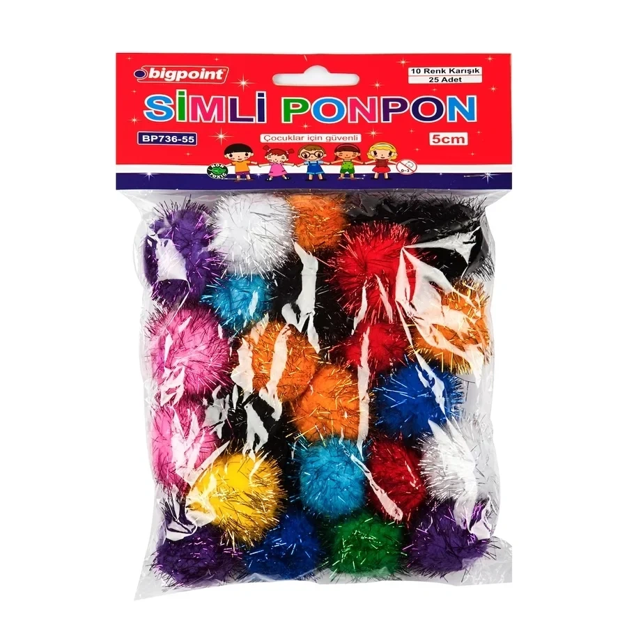 Bigpoint Ponpon Simli 5 cm 10 Renk (25 li Poşet)