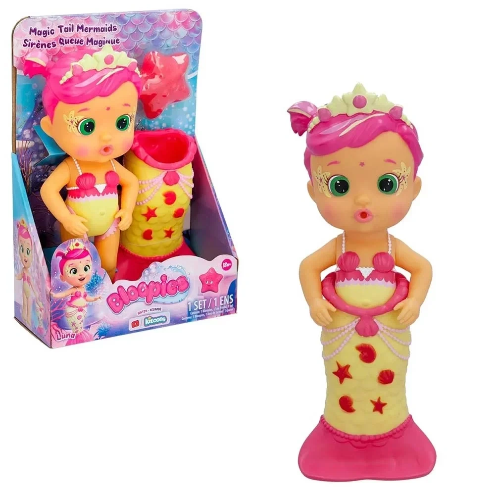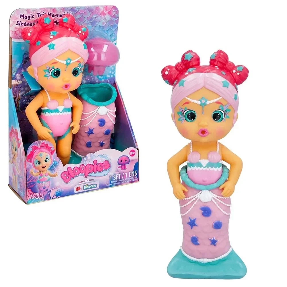 Ağızlarına çektikleri suyu fışkırtabilen veya suyla baloncuklar çıkarabilen Bloopies Deniz Kızı Bebekler paketlerde hem mayoları hem de deniz kızı kuyrukları ile geliyor.