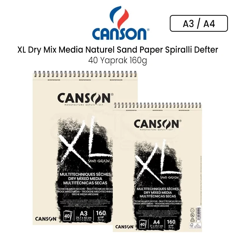 Canson XL Dry Mix Media Naturel Sand Paper Spiralli Defter 40 Yaprak 160g