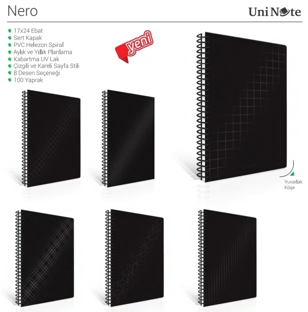 ÇINAR NERO SPİRALLİ SERT KAPAK DEFTER 17x24 KARELİ 100 YAPRAK (55215)