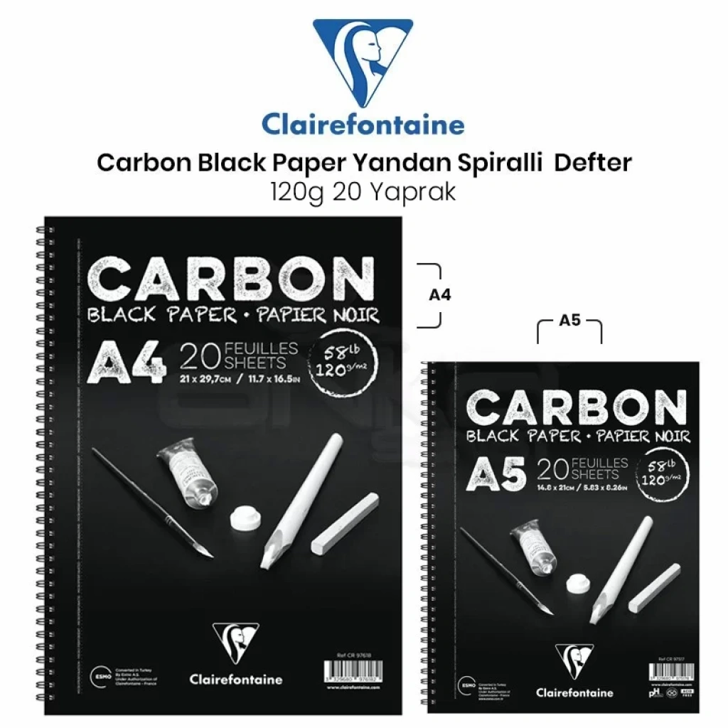 Clairefontaine Carbon Black Paper Yandan Spiralli 120g 20 Yaprak