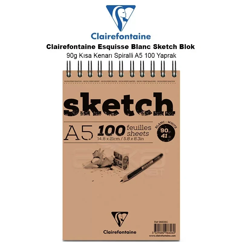 Clairefontaine Esquisse Blanc Sketch Blok 90g Kısa Kenarı Spiralli A5 100 Yaprak