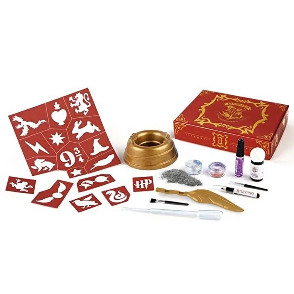 Sihirli dövmeler yaratmak ve Harry Potter’ın büyüsünü cildinizde hissetmek için sim, şablonlar, bir fırça ve kurşun kalemler içerir.