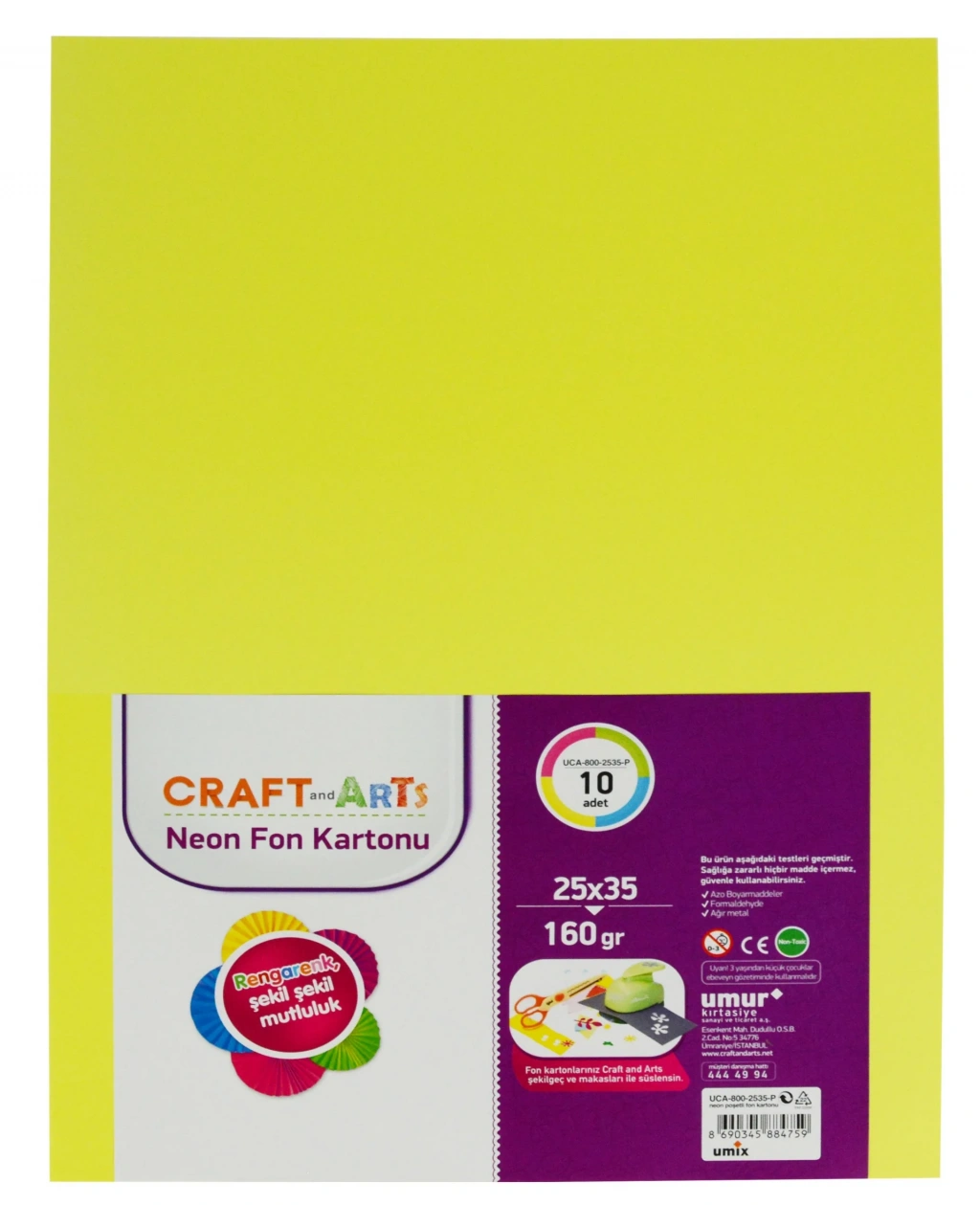 Craft And Arts Neon Fon Kartonu 160 Gr 10'lu 25x35 Poşetli