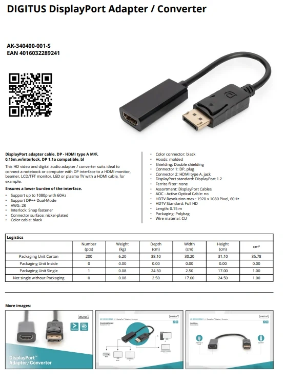 DİGİTUS AK-340400-001S DP-HDMI ADAPTÖR