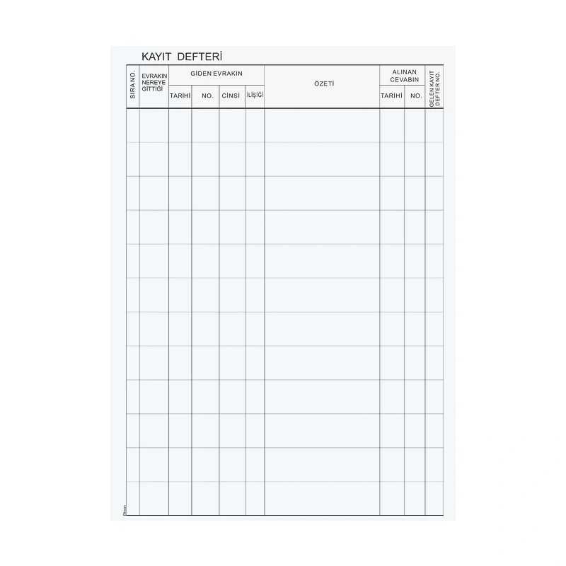 DİLMAN EVRAK KAYIT DEFTERİ 96 YAPRAK CİLTLİ