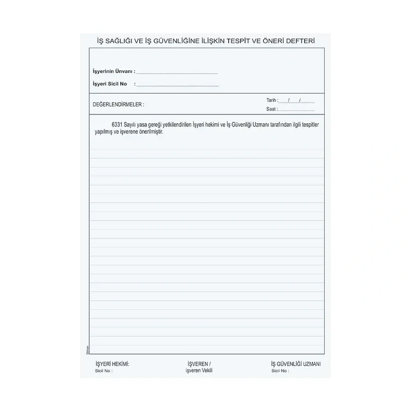DİLMAN İŞ SAĞLIĞI VE GÜVENLİK TESPİT ÖNERİ DEFTERİ KARTON KAPAK