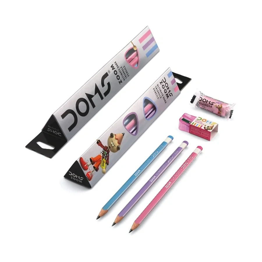 Doms Zoom Üçgen Kurşun Kalem Seti (Silgi ve Kalemtraş Hediyeli)