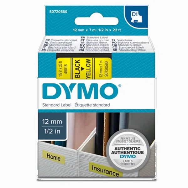 Dymo D1 Şerit Standart 12 MMx7 MT Sarı Üzerine Siyah 45018 S0720580
