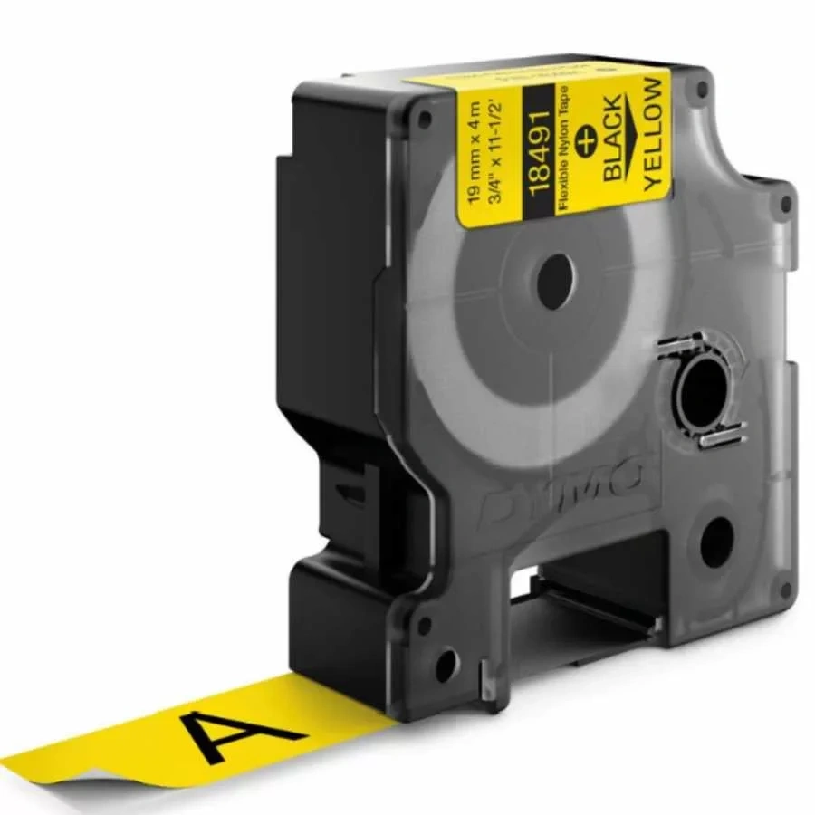 DYMO RhinoPRO 18491 Sarı/Siyah Esnek Naylon Şerit 19 mm x 3,5 mt