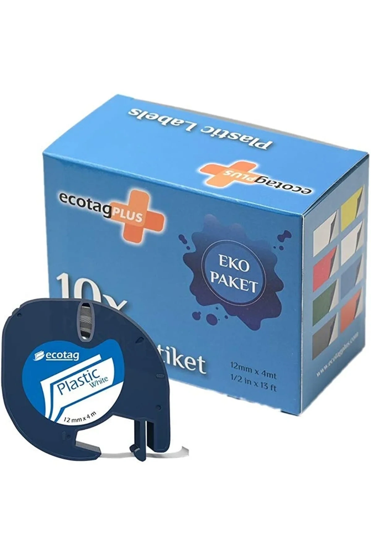 Ecotag Dymo Letratag Etiket Muadili 12 Mm X 4 Mt Plastik Beyaz 10 Lu Paket