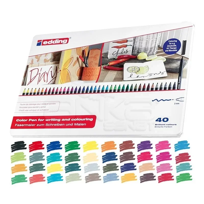 Edding 1300 Grafik Kalem Seti 40 Renk Metal Kutu