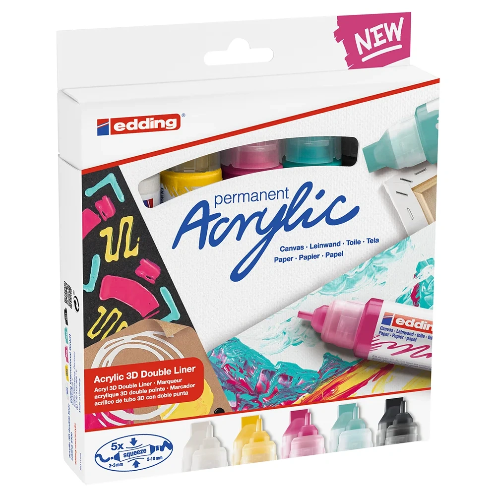 1800’lerin sonunda, bir tüp içinde kullanılan akrilik boya, sanatçıların kullandığı malzemeler anlamında yaşanan en büyük yeniliklerden birisi olmuştu. İkinci yenilik ise bugün edding’in geliştirmiş olduğu yeni 3D double liner. Kalem gövdesi gibi şekillendirilmiş, birinci sınıf edding akrilik boya içeren ve iki farklı boyutta başlığa sahip, esnek bir tüp. Kremsi boyayı yüzeye uygulamak ve harika 3 boyutlu efektler oluşturmak için. İnce başlık, ana hatların üzerinden geçmek ve ince ayrıntılar eklemek için idealdir. Tuvale daha fazla boya uygulamak için, tüpü daha geniş olan başlık tarafından sıkın. Herhangi bir boya rengini diğer tonlarla karıştırmak ve harmanlamak için bir fırça kullanılabilir. Tüp içindeki boya tek başına veya edding akrilik markörler ya da edding 5200 permanent spreylerle birlikte kullanılabilir. Çünkü geniş renk çeşidi her iki ürün grubuna da mükemmel uyum gösterir. Örneğin bir tuvale, ilk kat sprey boya uygulaması yapılabilir. Ardından üzerine akrilik markörlerle çizim yapıp, daha sonra 3D double liner kullanılarak son rötuşlar uygulanabilir. İlk kullanım öncesinde, kapağın korumalı ambalajını çıkarın. Ardından kapağı çıkarın. Akrilik boya görünene kadar markör gövdesi şeklindeki tüpün gövdesini dikkatlice sıkın. Her iki kapak da çıkarılmış ise tüpü sıkmayın, aksi takdirde boya her iki başlıktan da aynı anda akacaktır. Oda sıcaklığında (5-30 ° C) saklayın. Üstün kaliteli marka ürünü. Almanya'da üretilmiştir. Tuval, akrilik kağıt ve ahşap üzerinde harika boyama teknikleri için 2 farklı boyutta başlığa sahip inovatif, kalem şeklinde tüp; hemen kullanılabilir.. 5 adet renkli akrilik tüp içeren sanat seti - siyah, trafik beyaz, trafik sarı, telemagenta (pembe) ve parlak turkuaz. Üstün kaliteli akrilik markör, su geçirmez, su bazlı pigment mürekkep; örtücü, ışığa dayanıklı ve kalıcı; temiz bir uygulama ve mat bir görünüm için. Markör gövdesi şeklindeki tüpe hafifçe bastırarak kolay, sorunsuz bir biçimde uygulanabilir; kremsi akrilik boyalar, başlıklar ya da bir fırça ile uygulanabilir