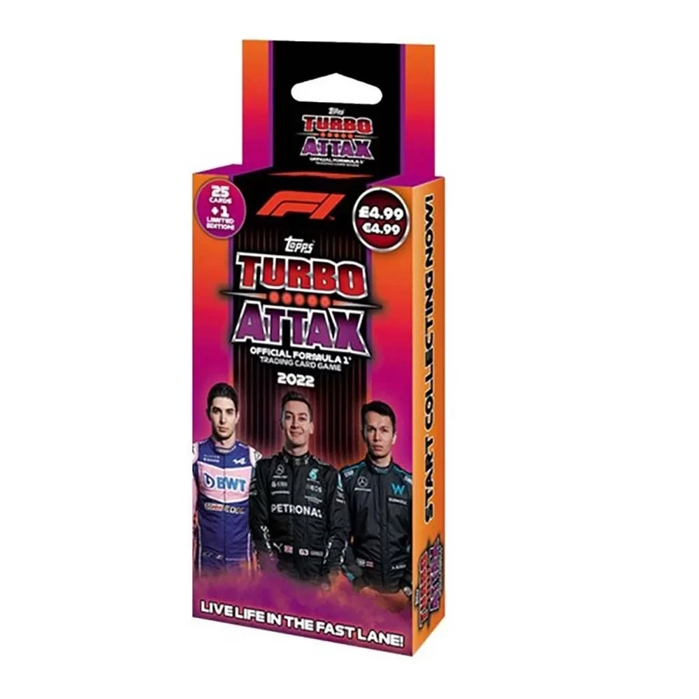 Bu pakette 25 adet kart ve sınırlı sayıda üretilmiş 1 adet ‘‘Diamond’' Lance Stroll kartı yer almaktadır.Formula 1 Turbo Attax 2022 koleksiyonunda toplam 380 kart yer almaktadır.Nadir kartların sayısı, ultra nadir kartlar ile arttırılmıştır.Sürücülerin imza kartları da ilk kez paketlerde yer almaktadır.Yarının Yıldızları serisi, F2 ve F3 sürücülerinin kartlarından oluşturulmuştur.F1 Hero Cards, Live Action (2021 Sezonu), Epic Moments, Record Breakers, 2022 F1 Cars, Track Masters, Idols ve Superstars koleksiyonun diğer serilerini oluşturmaktadır.