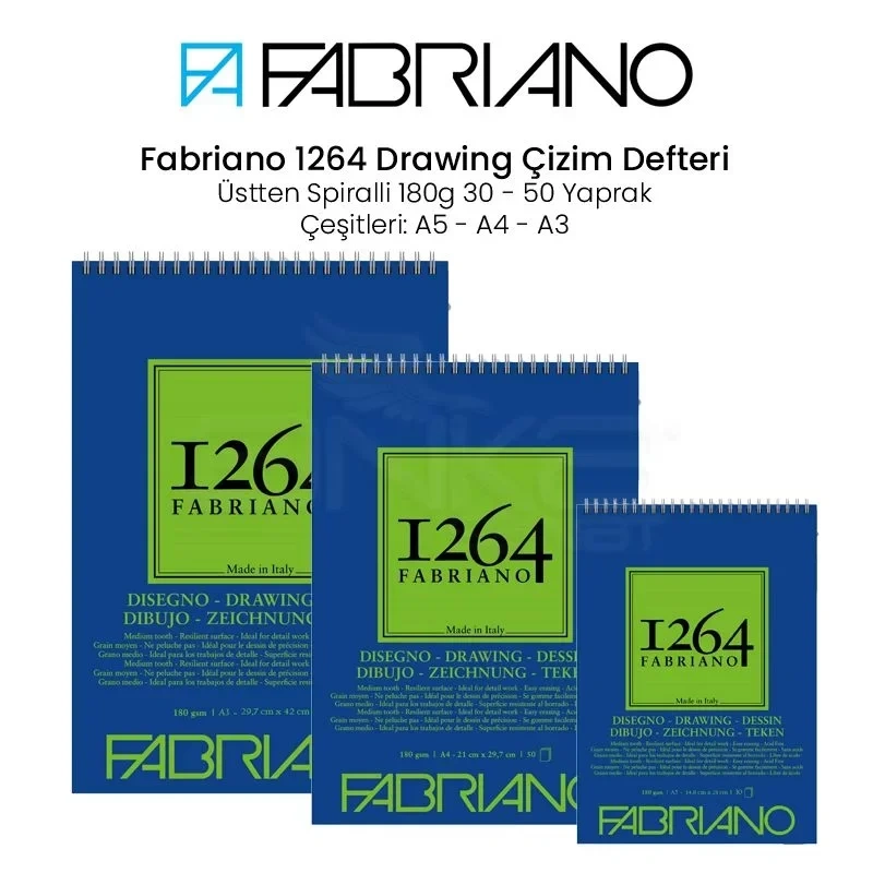 Fabriano 1264 Drawing Paper Çizim Defteri Üstten Spiralli 180g