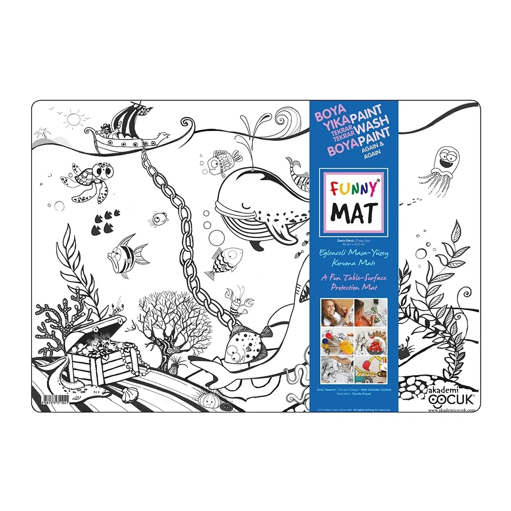 Funny Mat, her türlü aktivite için masa ve yüzey koruyucu olarak kullanılır. Üzerinde yemek yenebilir boyama yapılabilir, kil ve oyun hamuru şekkillendirilebilir, ders çalışılabilir. Funny Mat'ın kendiside aynı zamanda eğlenceli bir aktivite mataryelidir. Funny mat üzerinde desenler, keçeli kalem ve kuru boya  ile istenildiği gibi boyanabilir. Funny Mat, suyun altına tutulduğunda  ıslak mendille silindiğinde boyalar hemen çıkar ve defalarca farklı renklere boyamak mümkün olur.
