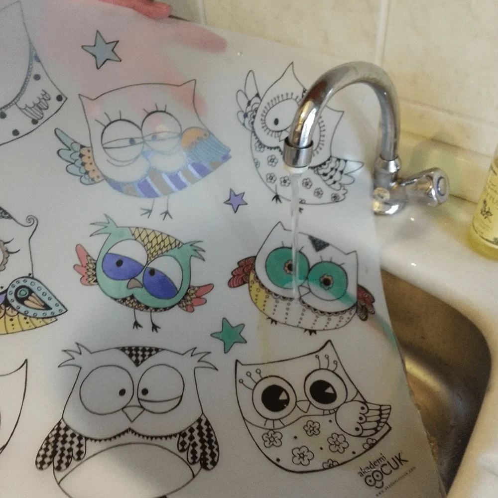 Funny Mat, suyun altına tutulduğunda boyalar hemen çıkar ve tekrar boyanıp renklendirilebilir.