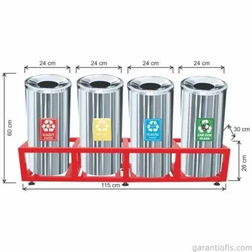 Garanti Metal 1812 Kafesli Paslanmaz Çelik 4 lü Geri Dönüşüm Çöp Kovası