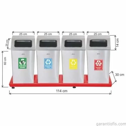 Garanti Metal 1812 Kafesli Paslanmaz Çelik 4 lü Geri Dönüşüm Çöp Kovası