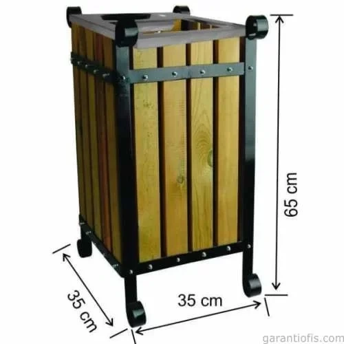 Garanti Metal 2100 Ahşap Kare Bahçe Tipi Çöp Kovası (45 Litre)