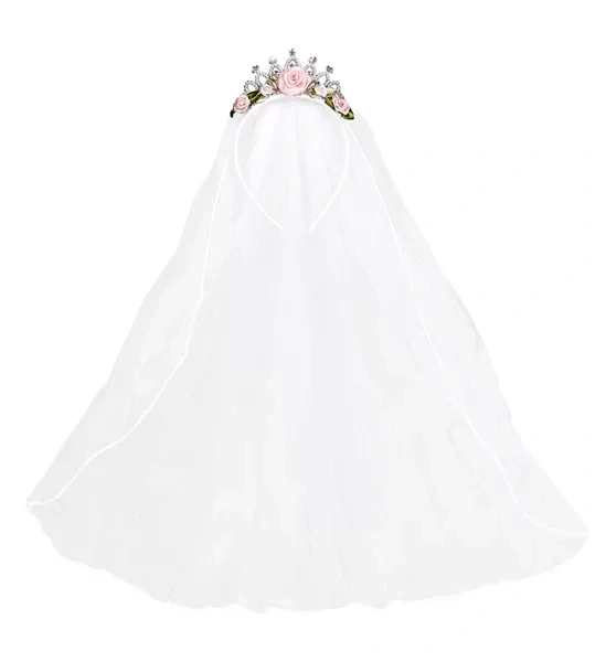 Gelin Duvağı Pembe Güllü ve Pırlanta Taşlı