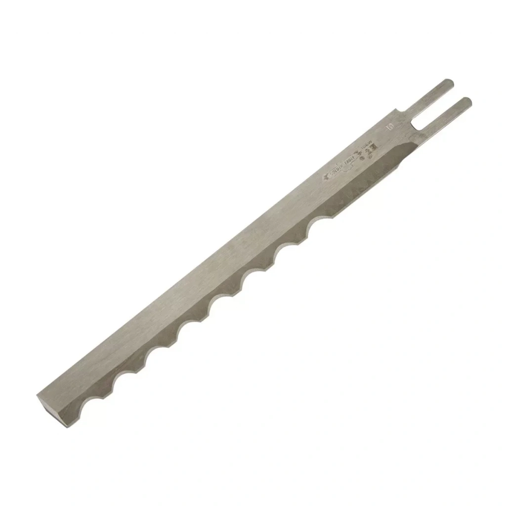 Dik Kesim Motoru Bıçağı Dalgalı 12 İnç 30 Cm Dik kesim motor bıçağı tekstil ve konfeksiyon atölyelerinde katlı atılan kumaşların kesim işleminde kullanılan kesim makinelerinin bıçaklarıdır. Her makinenin kendine özel, boy ve kesici uç özellikli bıçakları vardır. Kullanış şekli, sabit ve hareketli olarak değişmektedir