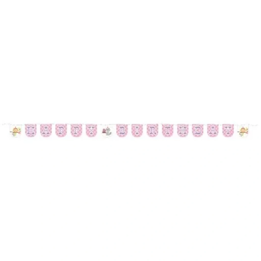 Happy Woodland Pembe Kurdelalı Harf Afiş