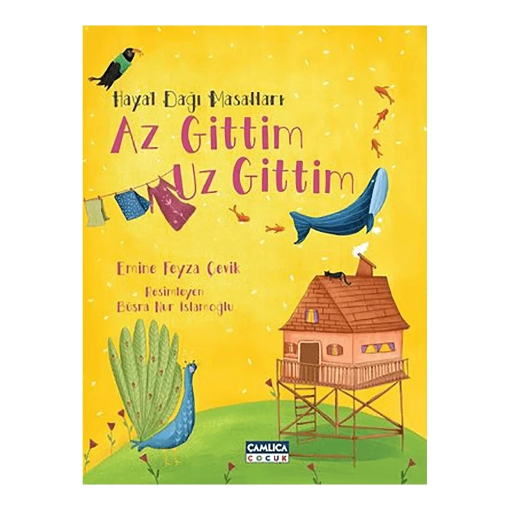 Hayal Dağı’nın en güzel tepelerinde, en güzel ağaçlarının altında, en güzel sularının kenarında yazıldım, çizildim ardından da basıldım. Şimdi yola çıktım, Az Gittim Uz Gittim. Kitap olarak sizinle buluşmak için heyecanlıyım.Masal dünyası kocaman, uçsuz bucaksız, hayal ve sürpriz doludur. Çocuklar bu dünyada hangi yoldan gideceklerini iyi bilirler. Kalplerindeki pusula yönünü hiç şaşmaz.Masalların sadece çocukların değil, bütün insanların üzerinde rahatlatıcı etkisi vardır. Hazırladığımız bu eser de bütün okuyucularımıza bir harita niteliğinde. Masal dünyasına girerken bu haritanızı alın ve kalbinizdeki kelebekleri duyduğunuza emin olun.Hayal Dağı Masalları-Az Gittim Uz Gittim kitabımızın içinde 30 masal bulunmaktadır. Her bir masal derinlemesine düşünülerek incelikle yazıldı. Klasik masallardan esinlendiğimiz masallarda, klasikler yeni bir formatla tekrardan kurgulandı. Her masal en özgün şekillerde oluşturuldu. Editörlerinden önce uzmanlar tarafından incelendi. 30 masalın her biri 4 sayfalık formatlarda oluşturuldu ve tam sayfa sevimli çizimlerle tasarlandı.Evini sevmeyen salyangoz, yüzmekten korkan yavru dinozor, incili balık, yardımsever sincap, cesur çocuk ile patates canavarı, masal karakterlerimizden bazıları…Dünyanın en sevimli şeyi, çatıdaki sesler, kilitli sandık ve daha bir sürü merak uyandırıcı masalımız sizlerle.Kalbindeki pıt pıtı duymak isteyenlere…